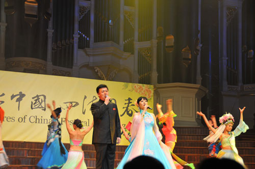 當(dāng)?shù)貢r間2月20日,21日由國務(wù)院僑辦、中國海外交流協(xié)會組派的“文化中國•四海同春”赴大洋洲藝術(shù)團在著名的悉尼市政廳劇院連續(xù)舉行了兩場慰僑演出。首場演出是2月17日,中國農(nóng)歷新年的大年初四,在澳大利亞墨爾本達拉斯布魯克斯音樂廳。雷鳴般的掌聲回蕩在劇院內(nèi),經(jīng)久不息。動聽的歌聲、悠揚的樂曲,曼妙的舞姿令觀眾如醉如癡。三場演出都獲得了巨大成功,引起轟動。當(dāng)?shù)刂髁魃鐣娂姲l(fā)來賀信。