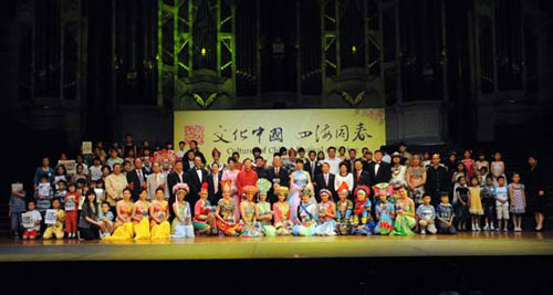 據(jù)報道,連日來“文化中國•四海同春”藝術(shù)團在北美洲、南美洲、歐洲、亞洲的演出也是盛況空前。與演出同時舉辦的還有題為《中華民族全家!反笮蛨D片展覽。在中國農(nóng)歷虎年春節(jié)期間,國務(wù)院僑辦和中國海外交流協(xié)會將一臺臺精彩紛呈、富有濃郁民族特色的文藝表演和《中華民族全家福》攝影展奉獻給五大洲的僑胞們,奉獻給當(dāng)?shù)氐拿癖,為僑胞帶去來自祖籍國的問候,向世界展示中國文化的博大精深,通過這個舞臺、這扇窗,增進世界人民對中國的了解,加深相互友誼,促進世界不同文化和諧共生,不同族群和睦相處。