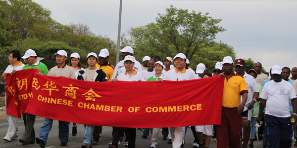博茨瓦納警察總署署長齊馬科、中國駐博茨瓦納使館參贊茍皓東、領事郭斌、佛朗西斯敦警署、佛市華人華僑和印巴商人等約200人參加了游行。游行過程中,當?shù)孛癖、印巴裔人紛紛加入游行隊伍?
