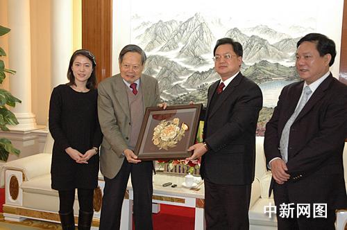 會(huì)見后,駱文智向楊氏伉儷贈(zèng)送了潮州特色的潮繡“金牡丹”,并宴請(qǐng)了楊氏伉儷。晚宴后,楊振寧夫婦還在駱文智的陪同下,參觀了潮州市傳統(tǒng)工藝精品館、潮州文化藝術(shù)中心和潮州博物館。完