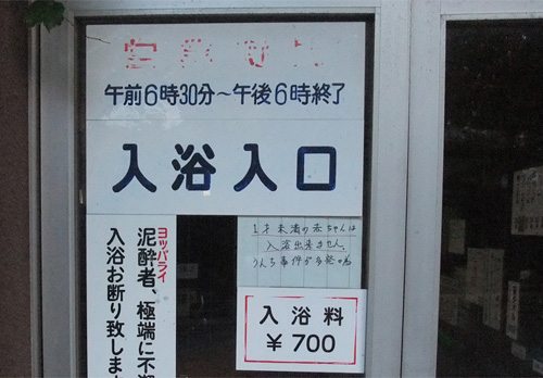有一回路過京都一處公共浴池,看到一張雷人的小紙條,并同“拒絕醉漢入內(nèi)”一起貼出來。上面寫的是“謝絕不滿1周歲的未成年幼兒入浴,因為發(fā)現(xiàn)他們在里面老拉巴巴!”