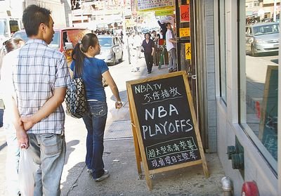 NBA季后賽一個(gè)月以來,特別是在晚餐時(shí)間,華埠許多中餐館在晚餐時(shí)間將電視畫面固定在體育頻道,有的大酒樓也不例外。顧客在餐廳停留的時(shí)間增加了,消費(fèi)金額也會有所增多,業(yè)者既賺人氣,又有買氣。
