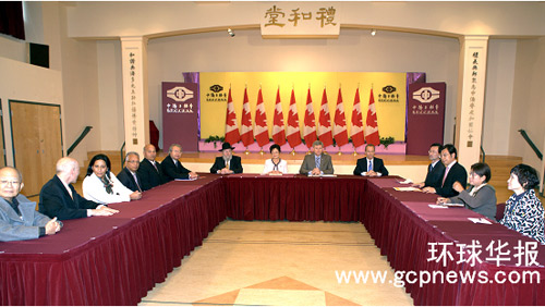 中新網(wǎng)10月14日電 據(jù)加拿大《環(huán)球華報(bào)》報(bào)道,加拿大總理哈珀(Stephen Harper)當(dāng)?shù)貢r(shí)間10月13日在聯(lián)邦國(guó)際貿(mào)易部長(zhǎng)戴國(guó)衛(wèi)(Stockwell Day)、華裔國(guó)會(huì)議員、多元文化國(guó)會(huì)秘書(shū)黃陳小萍的陪同下造訪總部位于溫哥華中僑互助會(huì),并與十多位少數(shù)族裔社區(qū)領(lǐng)袖舉行圓桌會(huì)議,聽(tīng)取社區(qū)意見(jiàn)。