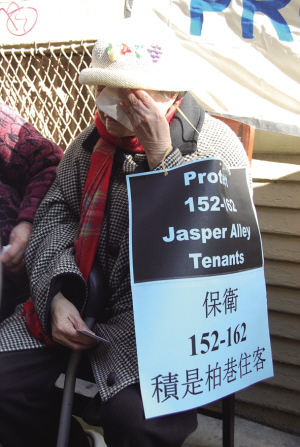 謝榮柏與太太在Jasper街已生活近20年,他們表示,基本住房維修需要一直被漠視:“業(yè)主為了私人利益,而逼遷我們這些無助的老人,難道真的要我們路宿街頭嗎?”根據(jù)規(guī)定,耆英住戶可以從接到逼遷信開始繼續(xù)居住一年。雖然業(yè)主的逼遷限期早已過了數(shù)周,這些無助的長者堅(jiān)決在寒冬下誓保家園,抗議無理逼遷。
