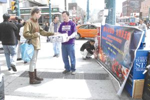 由多倫多華人團(tuán)體聯(lián)合會副主席王清官、楊學(xué)武及黃政等,24日中午偕同一班義工,在中區(qū)華埠拉起“愛心多倫多,真情系玉樹”的橫額,為青海玉樹的7.1地震災(zāi)民展開街頭募捐活動。在熙來攘往,人潮如鯽的士巴丹拿與登打士西街街角,一眾義工忙于呼吁路人踴躍捐助。當(dāng)中,除了路過的華人樂于捐助外,不少主流人士,在了解募捐目的后,亦紛紛解囊相助,益見人間真愛,無分國界地域。