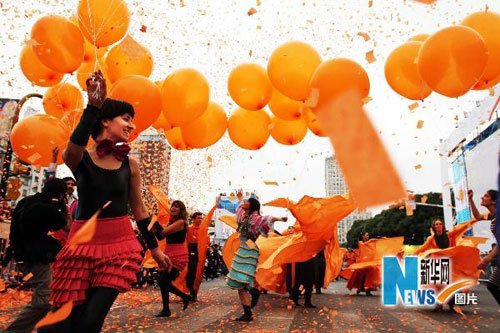 旅居阿根廷的世界各地僑民23日在首都布宜諾斯艾利斯舉行團(tuán)結(jié)大游行,慶祝阿根廷獨(dú)立200周年。