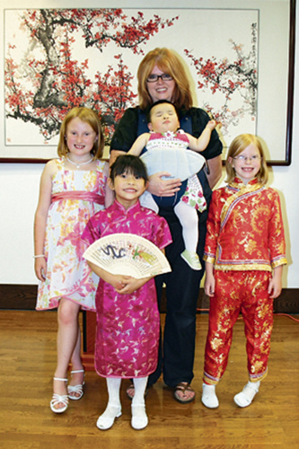 參加晚會的眾多家庭中,一位女士一直在胸前抱著一個中國女孩,無論觀看表演還是吃飯,從沒有把女孩放下過。她就是康肯(Lisa Konkin)?悼戏驄D已經有6個孩子,年長的4個已經長大成人,還有兩個女兒Caroline和Madeline。幾年前,康肯夫婦決定從中國收養(yǎng)孩子,經過了近3年的漫長等待后,才抱起現(xiàn)年6歲的Hanna-Lin。