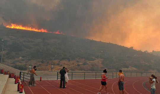 中新網(wǎng)8月24日電 近日希臘首都雅典東北部發(fā)生山火,火勢(shì)嚴(yán)重,并正在向雅典方向逼近,預(yù)計(jì)1.2萬(wàn)公頃土地被焚毀。希臘政府已宣布進(jìn)入緊急狀態(tài),疏散2萬(wàn)當(dāng)?shù)厝罕姡瑒?dòng)員數(shù)百名消防人員進(jìn)行撲救。