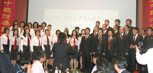 聯(lián)歡會上,米蘭華僑華人婦女會、米蘭第一中文學(xué)校、米蘭愛琴海樂隊及留學(xué)生代表等表演了歌舞、器樂、書法等節(jié)目,用各種形式表達(dá)對祖國60華誕的衷心祝賀!最后,米蘭華人合唱團(tuán)合唱《沒有共產(chǎn)黨就沒有新中國》和《歌唱祖國》,全體來賓與合唱團(tuán)一同高歌,唱出了全體旅意華人的心聲。