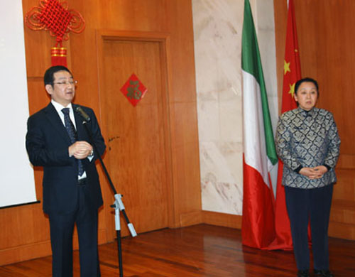 招待會由何風(fēng)云副總領(lǐng)事主持,張利民總領(lǐng)事首先向來賓和旅意廣大僑胞致以新春的祝福。張利民總領(lǐng)事說,2009年,中國成功舉辦新中國60周年慶典,為全球抵御國際金融危機(jī)做出了積極的貢獻(xiàn),中國在與世界各國的交流中取得了豐碩的成果。特別是中國國家領(lǐng)導(dǎo)人吳邦國委員長、胡錦濤主席相繼訪意,把兩國關(guān)系推向了新的高潮。隨著2010年中意文化年的舉辦,相信中意兩國關(guān)系一定會跨入一個新的歷史階段。
