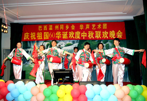 中國駐圣保羅總領(lǐng)事孫榮茂夫婦、副總領(lǐng)事顧云芬等領(lǐng)館官員出席了當(dāng)天活動。孫榮茂總領(lǐng)事在致詞中說,溫州同鄉(xiāng)會、華聲藝術(shù)團(tuán)舉辦國慶聯(lián)歡會,使我想起去年中國南方雪災(zāi)、汶川大地震,溫州僑胞與全僑一起慷慨解囊,踴躍捐款,成為巴西各僑團(tuán)捐款數(shù)額最高的會,充分表達(dá)了旅居巴西溫州兒女對祖國的摯愛和一片深情。孫總領(lǐng)事最后希望溫州同鄉(xiāng)和華聲藝術(shù)團(tuán)越辦越好,為團(tuán)結(jié)和凝聚僑胞愛國愛鄉(xiāng)熱情和力量,為活躍僑社業(yè)余文化生活做出新貢獻(xiàn)。