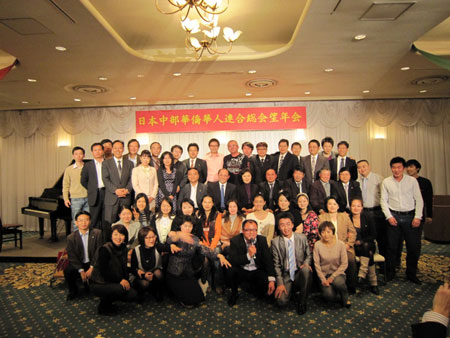 中新網(wǎng)12月16日電 據(jù)日本新華僑報網(wǎng)報道,12月13日,日本中部華僑華人聯(lián)合總會2009年度忘年會在三重縣合歡鄉(xiāng)酒店舉行。中部地區(qū)13個僑團、3家中資企業(yè)及各界華僑華人代表80多人歡聚一堂,中國駐名古屋張立國總領事出席活動并講話。