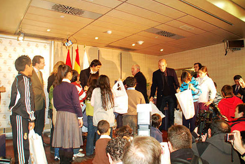 中新網(wǎng)12月26日電 據(jù)西班牙《歐華報(bào)》報(bào)道,由皇馬基金會發(fā)起“每個孩子都有玩具”的活動,日前在馬德里伯納烏球場內(nèi)舉行;蜀R現(xiàn)役超級球星卡卡,及退役球星齊達(dá)內(nèi)到場給馬德里兒童代表送出“第一份”圣誕節(jié)禮物。毛尚雅等4名華裔小朋友作為馬德里華僑子女代表,參觀了皇馬博物館、伯納烏球場及球員休息室等地,并在活動中上臺領(lǐng)取禮物,接受電視臺采訪。