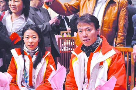 500多名僑界代表當日共同守候功臣們的到來,奪金的花樣滑冰雙人滑選手申雪和趙宏博剛到場,便受到英雄和明星式的待遇,從進場到坐下便好像“手握不完、相影不完、名簽不完!彪S后,王冰玉、周妍、岳清爽和柳蔭這冰壺4姐妹入場,又引發(fā)新一輪高潮,場面極為熱鬧,閃光燈亮個不停。