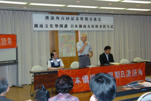 在8月2日的第100次特別交流會(huì)上,漢語(yǔ)角創(chuàng)辦者段躍中介紹了村山富市等日中知名人士的賀電。村山富市在賀電中高度評(píng)價(jià)漢語(yǔ)角堅(jiān)持100次實(shí)屬不易,并且指出日中兩國(guó)友好的基礎(chǔ)在民間,加強(qiáng)兩國(guó)國(guó)民的交流和相互理解至為重要,而漢語(yǔ)角正是實(shí)現(xiàn)這種交流的好形式。中日友好協(xié)會(huì)副會(huì)長(zhǎng)井頓泉特地從北京發(fā)來“東瀛百期漢語(yǔ)角 扶桑千秋友誼花”的賀詞,中國(guó)駐日大使館總領(lǐng)事許澤友在賀詞里稱贊“東京池袋漢語(yǔ)角 民間交流好形式”。