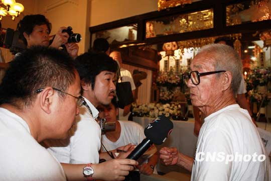 中新網(wǎng)東京8月8日電(記者 關妍)八日上午十時,由日中友好宗教者懇話會與中國被強征勞工死難者聯(lián)合會聯(lián)合舉辦的“祈禱世界和平•中國被強征勞工死難者慰靈法會”在東京市內(nèi)本久寺內(nèi)舉行。中國駐日大使崔天凱、日本參議院議長江田五月、幸存者、殉難勞工遺屬、港臺地區(qū)參加者,以及兩國僧侶等中日雙方各界人士兩百多人前往出席。