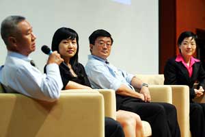 三位主講者分別是軟件公司Managed Objects亞太總經理蔡卓麟、律師鐘庭輝和國大金融學助理教授張偉娜博士,他們根據各自領域的課題,分別就新加坡工作文化、法律問題和學術氛圍發(fā)表演講。