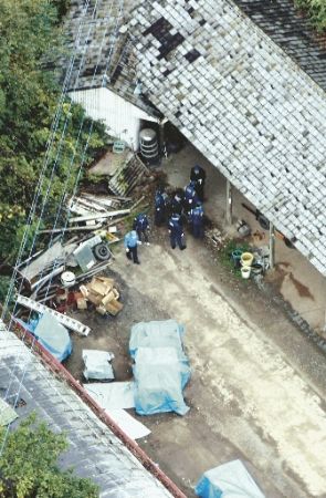警察在現(xiàn)場發(fā)現(xiàn)的三名死者分別為22歲男性中國農業(yè)研修生王寶泉、67歲日本男性廣地宏一、63歲日本女性廣地富子。王寶泉在庭院的一個小倉庫內上吊自殺,他身上沒有什么外傷,卻有著顯然是被濺到衣服上的一片一片血跡,廣地宏一倒在庭院的地上,廣地富子倒在一家作業(yè)坊內,兩個人身上都穿著工作服,都是流血負有外傷。被送到醫(yī)院的55歲的日本女性坂梨龍子身上也受了傷。庭院內還發(fā)現(xiàn)了行兇的農具、刃物等。