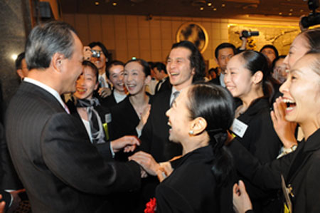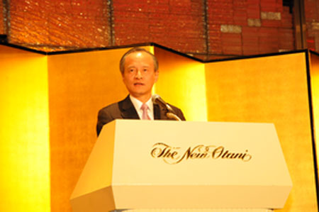 記者在現(xiàn)場看到,日本政經(jīng)界的許多“大腕”人物出席了招待會。其中有日本參議院議長江田五月、經(jīng)濟產(chǎn)業(yè)大臣直島正行、國家公安委員會委員長中井洽、公明黨黨首山口那津男、前首相福田康夫、中曾根康弘、前經(jīng)濟產(chǎn)業(yè)大臣二階俊博、前自民黨干事長中川秀直、伊吹文明,經(jīng)團聯(lián)會長御手洗富士夫等等。