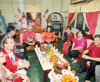 納吉冒雨拜訪的首家民宅主人陳福民時,獲得該戶人家的熱烈歡迎,并紛紛穿上喜氣洋洋的唐裝來迎接首相。首相雖然在該處逗留了5分鐘,不過卻和陳家爭取時間進行交流。