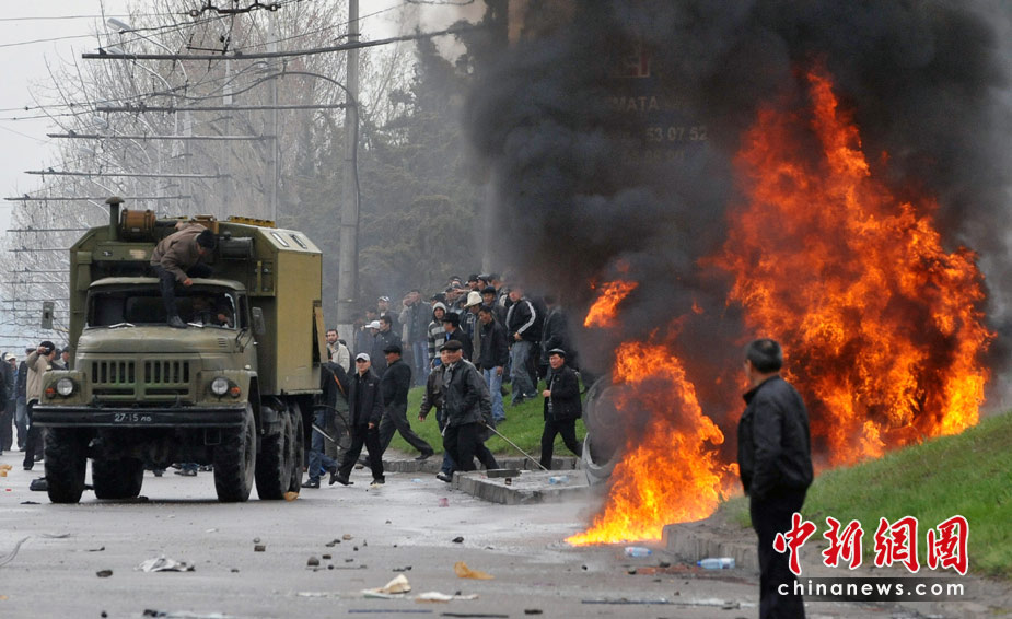 目前吉爾吉斯斯坦的情況極為混亂,城市處于無政府狀態(tài),搶掠事件頻發(fā)。許多歹徒在比什凱克市中心大肆進(jìn)行打砸搶活動,成群結(jié)隊(duì)地砸開關(guān)門的商店,哄搶店內(nèi)商品。著名的“商品中心”購物廣場和“人民”連鎖超市都遭到大規(guī)模洗劫。