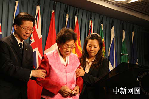 中新網(wǎng)渥太華11月27日電(韓瀟)來自中國(guó)、韓國(guó)、菲律賓和荷蘭的四名年逾八旬的“慰安婦”幸存者今天在渥太華國(guó)會(huì)山舉行聽證會(huì),控訴日本政府在二戰(zhàn)中強(qiáng)迫婦女充當(dāng)“慰安婦”的罪行,并呼吁加拿大敦促日本承認(rèn)戰(zhàn)爭(zhēng)罪行,向“慰安婦”正式道歉和賠償。據(jù)悉,這是加拿大歷史上首次有二戰(zhàn)“慰安婦”在國(guó)會(huì)作證。