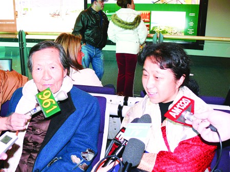 劉面換身穿傳統(tǒng)中式棉襖、藍(lán)色外套和白色圍巾出現(xiàn),雖然經(jīng)過十多小時(shí)的飛行,精神看起來仍然不錯(cuò)。前往接機(jī)的史維會(huì)共同主席列國遠(yuǎn),特別送上紅色大圍巾予以御寒。