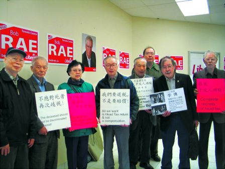 人頭稅苦主及家屬聯(lián)盟昨日前往李博的競(jìng)選辦公室請(qǐng)?jiān)。(加拿大《明?bào)》)