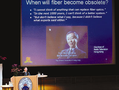 在總結(jié)演講時,黃美蕓亦特別寄語世人:“以光纖為本的全球通訊網(wǎng)絡(luò)確實做到天涯若比鄰……然而訊息泛濫并不是一件好事……光纖通訊不僅是科技上的進(jìn)步,還為社會帶來了顯著變革;下一代人將會以不同的方式學(xué)習(xí)和成長!