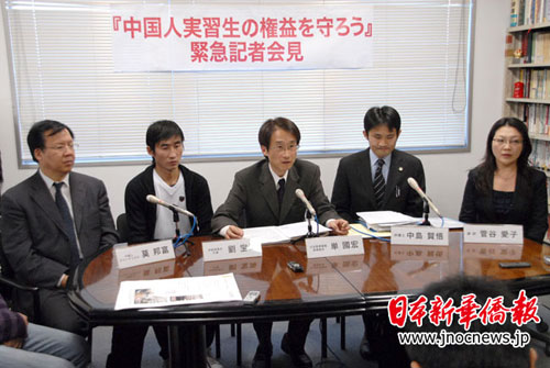 1月7日下午,10名在日中國實(shí)習(xí)生在《日本新華僑報(bào)》編輯部舉行了“維護(hù)中國實(shí)習(xí)生合法權(quán)益緊急記者會見”。日本共同社、時(shí)事通信社、《朝日新聞》、《每日新聞》、TBS電視臺等日本主流媒體都派記者前來采訪。同時(shí),中國中央電視臺、北京電視臺分別在1月5日和1月6日晚上對此事件進(jìn)行了報(bào)道。