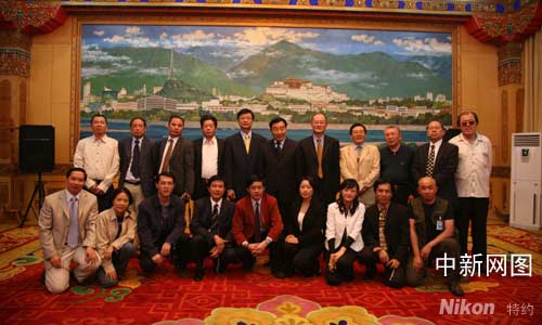 圖為張慶黎與訪藏海外華文媒體代表團全體合影。賈長飛 攝影
