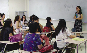近年來(lái),一直教10、11年級(jí)中文的程薇娜說(shuō),在美國(guó)教高年級(jí)學(xué)生學(xué)中文,有兩點(diǎn)很重要:第一,留住學(xué)生的學(xué)習(xí)興趣;第二,幫助學(xué)生考好SATⅡ(美國(guó)大學(xué)入學(xué)科目考試)。她認(rèn)為,只有把學(xué)生的基礎(chǔ)打好,學(xué)生們進(jìn)入大學(xué)后意識(shí)到中文的重要性,才會(huì)自覺(jué)學(xué)好中文。