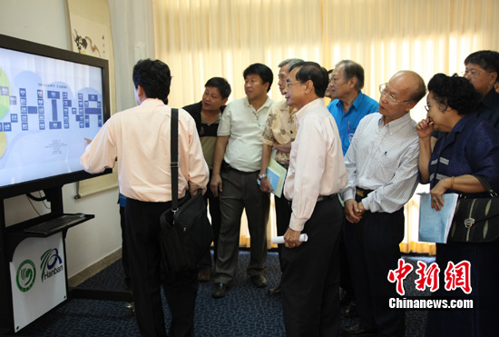 在孔子課堂“中國文化體驗中心”,幾名高年級的學(xué)生正在引導(dǎo)50多位來自泰國北部清萊、清邁、南邦等8個府13所學(xué)校的理事和漢語教師,參觀孔子課堂利用現(xiàn)代多媒體科技手段打造而成的中國文化體驗設(shè)備!翱,用手點(diǎn)這里就可以讓古箏發(fā)出聲音!币幻麑W(xué)生向記者展示著。用手指輕觸電子觸屏就能讓各色的“中華文化大餐”躍然于屏幕之上,中國傳統(tǒng)器樂展示、國粹京劇臉譜拍照和中國傳統(tǒng)剪紙體驗更是令參觀者們個個豎起大拇指,連連叫好。