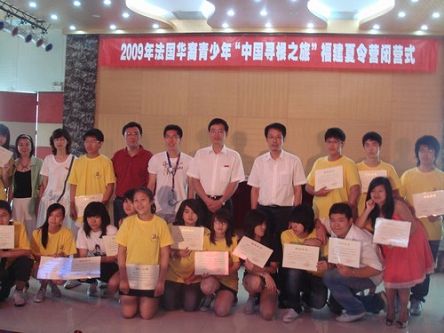 8月5日,2009年法國華裔青少年“中國尋根之旅”福建營在廈門集美大學(xué)閉營。閉營儀式上,法華裔青少年們在精心準(zhǔn)備的匯報演出中盡顯才藝,將學(xué)習(xí)成果進(jìn)行了精彩展示,還開心地領(lǐng)取到了結(jié)業(yè)證書。