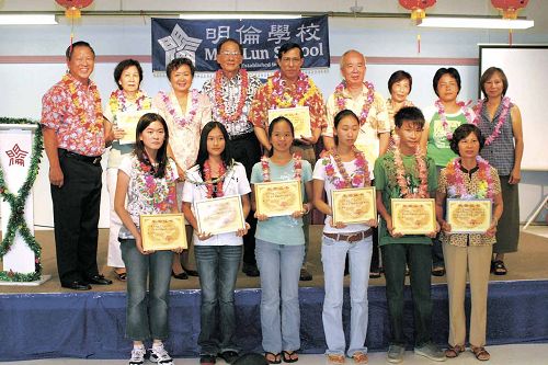 中新網(wǎng)9月21日電 據(jù)美國(guó)《星島日?qǐng)?bào)》報(bào)道,美國(guó)夏威夷明倫學(xué)校近日召開頒獎(jiǎng)大會(huì),褒揚(yáng)在第10屆世界華人學(xué)生作文大賽中獲獎(jiǎng)的師生。5位學(xué)生和4位教師高興地從學(xué)校董事長(zhǎng)方惠思手中接過(guò)由大賽組委會(huì)從中國(guó)寄來(lái)的得獎(jiǎng)證書,全校師生也分享了他們的光榮。