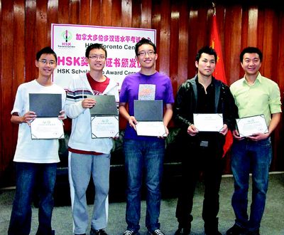 多倫多地區(qū)這次獲得獎(jiǎng)學(xué)金的考生共有七位,他們于2008年參加HSK考試成績(jī)優(yōu)異而獲獎(jiǎng)學(xué)金,并分別于2009年暑期前往北京語言大學(xué)、山東師范大學(xué)、北京語言文化大學(xué)、上海大學(xué)、華東師范大學(xué)、南京師范大學(xué)及黑龍江大學(xué),與來自五大洲的漢語學(xué)習(xí)者和愛好者一同學(xué)習(xí)漢語和了解中國(guó)文化,并到中國(guó)一些名勝古跡參觀旅游。