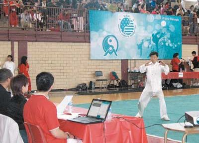 這次比賽分傳統(tǒng)、散手、器械、規(guī)定套路、太極等類,參賽選手有初學(xué)不久者,也有多次參賽的老資格運(yùn)動(dòng)員,參與熱情最高的是生長在美國本地的青少年。