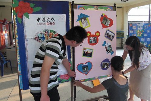 在短暫的休整過后,各教學(xué)點的大樂園教師分別召開會議,研究安排本次“中華文化大樂園”活動所面臨的問題和解決辦法。針對此次大樂園生源較少的特殊情況,校方采取了加大宣傳力度、印發(fā)大樂園宣傳冊、給周邊地區(qū)的學(xué)校和社團分發(fā)邀請函等措施,以確保大樂園活動的順利開展。大樂園教師還精心布置了教師風(fēng)采、書法、國畫、剪紙作品展板,希望能夠激發(fā)學(xué)生和家長們對學(xué)習(xí)中華傳統(tǒng)文化的興趣。