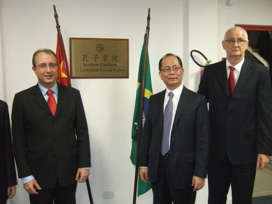 圣保羅州立大學(xué)校長代表、湖北大學(xué)校長代表、孔子學(xué)院院長、圣保羅州議員等先后致辭,贊揚在中巴雙方的努力下,孔子學(xué)院一年來取得的成績。