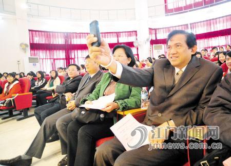 “天氣很冷!在這里怎么樣?”剛走進(jìn)江門幼師音樂樓大門,亞歷山大領(lǐng)事就用印尼語(yǔ)問華文班的學(xué)生!疤鞖饫渚筒黄亮!”不知道是誰(shuí)的回答,讓大家都一陣大笑。