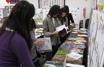 經(jīng)過立命館孔子學(xué)院的老師、活動相關(guān)工作人員和志愿者的精心籌劃與布置,設(shè)立在立命館孔子學(xué)院教學(xué)樓內(nèi)的展廳煥然一新。展出的圖書既有漢語教材及中華文化類的圖書,也有音像類材料和漢語水平考試輔導(dǎo)用書。值得一提的是,本次教材展特別把兒童漢語類圖書作為一個重要主題,包括各類兒童漢語教材及漢語插圖本。本次書展的另一個亮點(diǎn)是多語種版的漢語教學(xué)有聲掛圖,精心挑選的21張掛圖懸掛在展廳內(nèi),是書展中最具科技含量的展品。