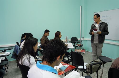 中新網(wǎng)2月1日電 據(jù)國家漢辦網(wǎng)站消息,在駐古巴使館的高度重視和有力支持下,古巴哈瓦那大學孔子學院自開學以來,獲得當?shù)孛癖姷臒崃曳磻OM麍竺麉⒓訚h語班學習的人數(shù)越來越多。鑒于報名者中有很多來自在校大學生,也有一些是曾在中國學習過漢語的留學歸國人員,孔子學院開設了3個本科漢語班,從眾多報名者中錄取了52人,開展?jié)h語本科教學。孔子學院從院長到教師工作熱情很高,講課生動有趣,教學效果良好。