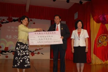 中新網(wǎng)2月8日電 2月6日,中國(guó)駐文萊大使佟曉玲在出席文萊中華中學(xué)舉辦的“虎臥華堂耀春輝”揮春比賽頒獎(jiǎng)典禮時(shí),代表中國(guó)海外交流協(xié)會(huì)向該校轉(zhuǎn)交了10萬(wàn)元人民幣辦學(xué)經(jīng)費(fèi)。