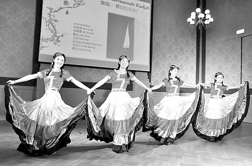 據(jù)悉,維也納大學(xué)孔子學(xué)院成立3年來,已舉辦了300多場各類活動。圖為中國大學(xué)生在表演舞蹈《燃燒的火把》。(方祥生 攝)