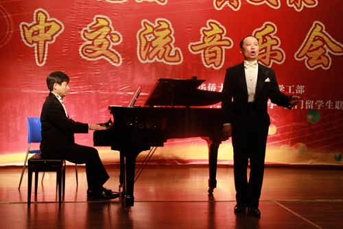 中新網(wǎng)3月12日電 據(jù)華僑大學(xué)網(wǎng)站消息,隨著深情而婉轉(zhuǎn)的鋼琴曲《愛之夢》響起,11日晚,由華僑大學(xué)宣傳部、學(xué)工部、音樂舞蹈學(xué)院主辦,日本國立宮崎大學(xué)、廈門留學(xué)生聯(lián)誼會協(xié)辦的慶祝華僑大學(xué)建50周年“華園藝苑”之日中交流音樂會在該校的明德堂拉開帷幕。日本著名鋼琴演奏家、日本國立宮崎大學(xué)教授葛西寬俊與閩籍男高音歌唱家黃文泉聯(lián)手引領(lǐng)華園師生走進(jìn)迷人的音樂世界。