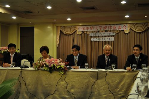 14日上午,代表團(tuán)在曼谷舉行泰國(guó)華文媒體見(jiàn)面會(huì)。華僑大學(xué)副校長(zhǎng)張禹東向泰國(guó)華文媒體介紹了華僑大學(xué)的辦學(xué)情況,特別是在泰國(guó)開(kāi)展的華文教育情況和建校50周年慶典活動(dòng)的籌備情況,向泰國(guó)華文媒體對(duì)該校的長(zhǎng)期支持表示感謝,期望雙方今后繼續(xù)加強(qiáng)聯(lián)系合作,進(jìn)一步提升華僑大學(xué)在泰國(guó)的社會(huì)影響力。與會(huì)人員就如何在泰國(guó)華文媒體乃至泰文主流媒體建立密切有效的合作方式加強(qiáng)對(duì)華僑大學(xué)的宣傳、繼續(xù)組建泰國(guó)媒體訪問(wèn)團(tuán)來(lái)校訪問(wèn)、校慶報(bào)道等問(wèn)題進(jìn)行了富有建設(shè)性的交流,就有關(guān)問(wèn)題達(dá)成共識(shí)。