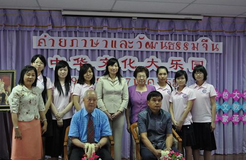 泰國華文教師公會主席、華僑大學(xué)校董羅宗正,泰國邦高皇家圣諭中學(xué)校長BOONCHU WING PAT,華僑大學(xué)華文學(xué)院副院長李曉潔以及大樂園的老師、參加夏令營活動的學(xué)生和部分家長出席了開營式。
