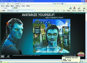 美國科幻大片《阿凡達》正在成為國內(nèi)網(wǎng)民熱烈討論的對象。在百度貼吧內(nèi),“阿凡達吧”內(nèi)帖子數(shù)量已經(jīng)超過13萬。眾多網(wǎng)民熱烈討論《阿凡達》電影劇情與特技,將其與《三槍》等國產(chǎn)大片電影進行比較,而且動手制作自己的PS,變身為阿凡達。麥當(dāng)勞網(wǎng)站推出的“阿凡達變臉器”軟件,可以將用戶上傳的照片直接制作成納美人的模樣。網(wǎng)友只要提供一張清楚的照片,利用該軟件,就可以在不到2分鐘的時間內(nèi)變身為潘多拉星球上的納美人,擁有納美人兩個招風(fēng)耳、藍色皮膚、紅色的眼睛。該軟件分成了男版和女版,供網(wǎng)民自主選擇,還可以自主更換背后場景。網(wǎng)民不僅制作李宇春、姚明、郭德綱、阿嬌、小沈陽等娛樂明星的“納美照”,而且自己紛紛變身為“納美人”,在網(wǎng)上曬出來供大家欣賞。記者發(fā)現(xiàn),在百度上用“阿凡達變臉器下載”進行搜索,能找到2000多個網(wǎng)頁鏈接。許多網(wǎng)站還推出了該軟件的使用教程,吸引網(wǎng)民點擊。一家網(wǎng)站上還有網(wǎng)友發(fā)起了“納美人”選美大賽,網(wǎng)民紛紛上傳自己的“阿凡達頭像”,由網(wǎng)民投票進行PK。