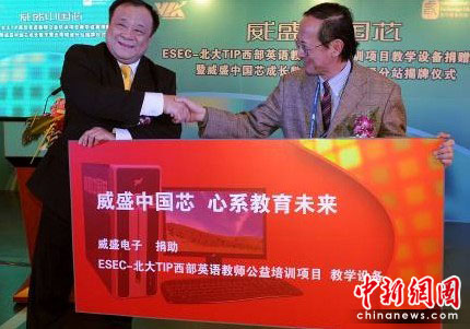 在捐贈儀式上,威盛宣布向北京大學繼續(xù)教育學院、文理應用學院ESEC教育機構(gòu)TIP項目捐贈一批威盛Nano凌瓏處理器平臺電腦教學設備,這是威盛從2006年開始對該西部英語教師公益培訓項目的第三期捐贈。與此同時,威盛中國芯成長數(shù)字營云南分站也正式揭牌,從而將威盛中國芯成長數(shù)字營的分站數(shù)量增加到21個,基本覆蓋整個西部地區(qū)。