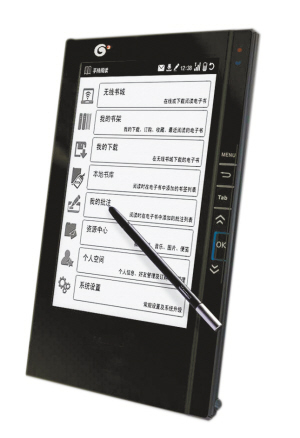 通體白色的機(jī)器,屏幕上古雅的國(guó)畫畫面,108種內(nèi)置正版書,著實(shí)吸引了不少人的圍觀,而這款機(jī)器正是由中國(guó)出版集團(tuán)公司推出的電子閱讀器,“這款電子閱讀器的推出標(biāo)志著中國(guó)出版集團(tuán)正式進(jìn)入電子閱讀器產(chǎn)業(yè),也是中國(guó)出版集團(tuán)從傳統(tǒng)出版集團(tuán)向新型出版集團(tuán)邁進(jìn)的重要一步”。中國(guó)出版集團(tuán)總裁聶振寧說(shuō)。據(jù)現(xiàn)場(chǎng)工作人員介紹,這款電子閱讀器包括了中國(guó)出版集團(tuán)的所有圖書并都擁有電子版權(quán),可供讀者下載閱讀。而仗著內(nèi)容的優(yōu)勢(shì),其閱讀器的市場(chǎng)銷售價(jià)在5000元左右,比市場(chǎng)上流行的閱讀器兩三千元的價(jià)格高出一大截。